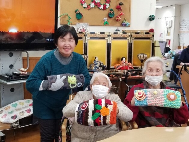 JA菊池女性部が、認知症ケアの「マフ」制作し、寄贈