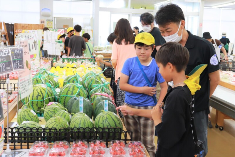 現在14種類の作物を栽培している同校の5年生たち。自分たちが育てた作物と農家が出荷した農産物を比べ、着色や形状の違いについて理解を深めました。初めて産直施設を訪れたという児童は、「スーパーには売っていない野菜がたくさんあって楽しかった。これからも野菜作りをがんばりたいと思った」と話してくれました。