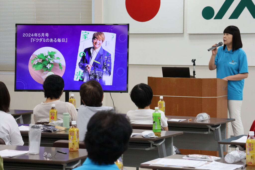大会では、家の光協会普及文化本部の久保野剛副本部長から「『家の光』活用から始まるJA・女性部ファンづくり」と題した講演があり、『家の光』が創刊したきっかけや、進化し続ける記事の内容、JA事業の役割に関する知識について聞き、よりいっそう理解を深めました。