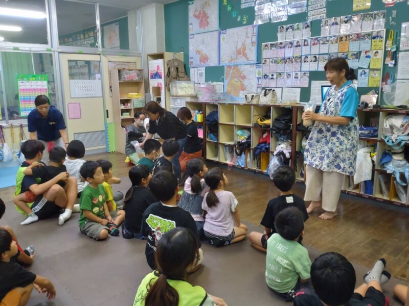JAたまな女性部横島支部は、毎年夏休み期間中に、横島小学校の学童クラブの児童と交流をおこなっています。今年は「廃食用油はどうしてますか?」をテーマに開催しました。