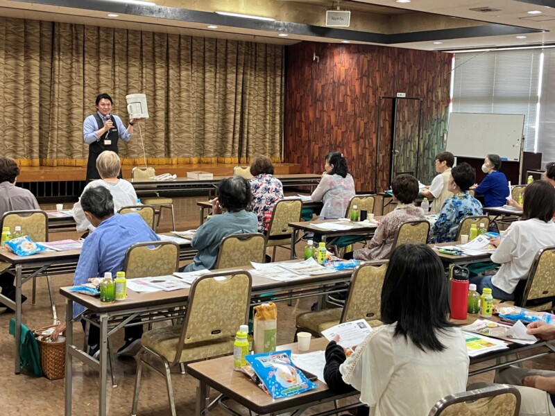 今回は「JAくらしの宅配便」で取り扱う商品を主に、各メーカーより講師を招いて説明を受け、商品の試飲や試食、実際に商品に触れて使用効果を体験するなど、商品知識を深める有意義な研修会となりました。