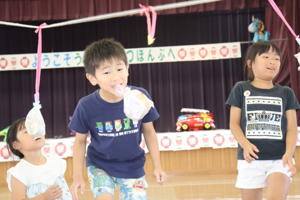 ゲームでは、「おのだネギ三昧」釣りや、輪投げ、パン食いレースを職員といっしょに楽しみました。パン食いレースでは、初めて出会った子ども同士が「がんばれ!」と応援し合う姿も見られ、会場全体が優しい空気に包まれました。