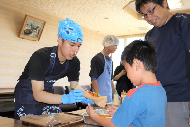 食べ物ブースでは、「きのう今日あすパラ」を女性部が調理した「アスパラドッグ」をはじめ、『ちゃぐりん』掲載のフルーツポンチなど7品を祭りの屋台風に設置し、参加者たちはブースを回り、宇部の食材をみんなでおいしく味わいました。