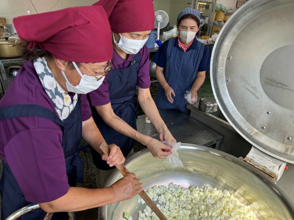 ナスやカボチャ、オクラなど、夏野菜がたっぷり入ったカレーは、授業を終えた参加者たちに大好評で、あっという間に完食となりました。デザートには、女性部のメンバーが手作りしたゼリーも提供しました。