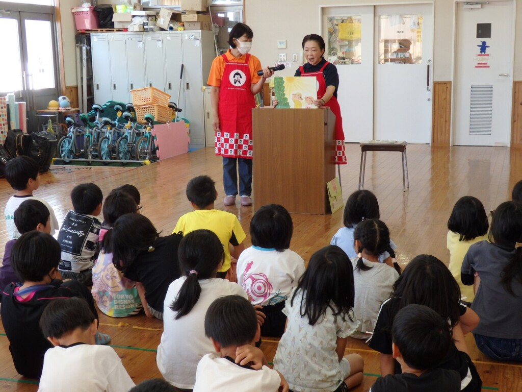開会挨拶では、女性部の代表者が食事のたいせつさや食べることに関わる人たちへの感謝の気持ちなどを児童たちへ語りかけました。フェスタでは、食育をテーマにした紙芝居の読み聞かせや、ちゃぐりん食農クイズ、『ちゃぐりん』掲載の工作「こんにちは人形」の製作をおこない、子どもたちと交流を深めました。子どもたちはどの活動にも積極的に取り組み、参加した女性部員は「子どもたちから元気をもらえました」と楽しそうに話しました。