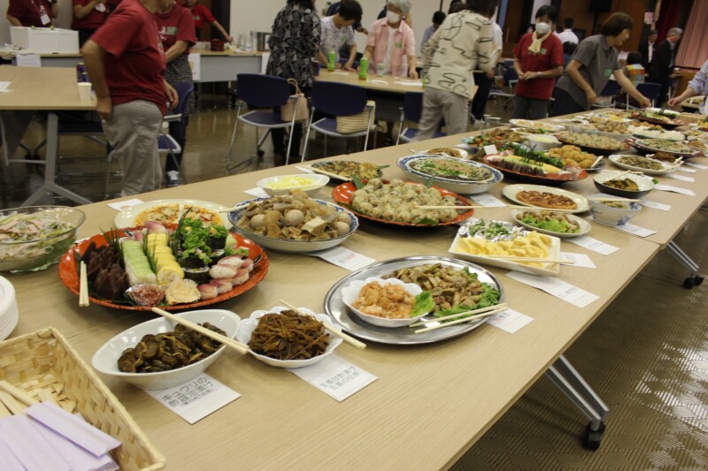 この日は、女性部自慢の手作り料理や『家の光』掲載のレシピを使用した料理など、約30品を用意。地元の食材をふんだんに使い、どの料理も「おいしい」と、好評でした。食事はお代わり自由のバイキング形式で、数回にわけてさまざまな料理を楽しむ方もいました。食後のデザートもあり、あっという間になくなるほど大好評でした。