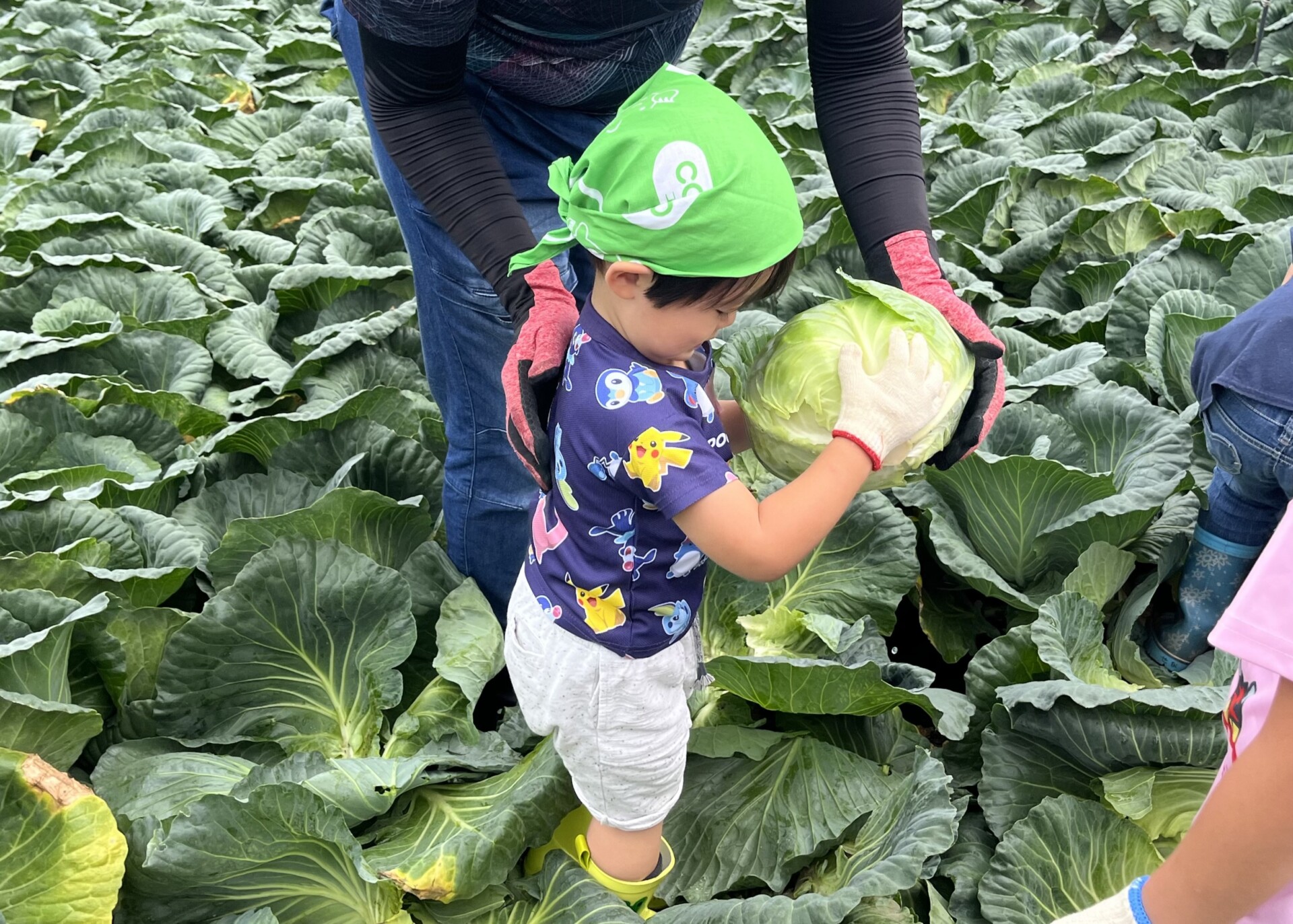 当日は、キャベツがどのように育ち出荷されるのかを動画で学習した後、JA職員の指導を受けながら実際に収穫作業を体験。子どもたちは大きなキャベツを一生懸命抱えながら箱詰めをおこないました。また、とれたてのキャベツをその場で試食。参加者たちからは「甘くておいしい」「初めての収穫体験で楽しかった」と笑顔いっぱいの声を聞くことができ、収穫の喜びと食べ物のありがたさを感じる一日となりました。