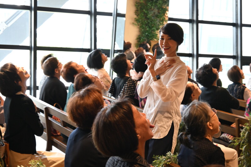今回の企画は2部制。第1部は、元宝塚歌劇団月組で活躍し、退団後は顔ヨガインストラクターとして活動する京樹(けいじゅ)真那さんによるフェイシャルヨガのレッスンです。参加者は、手鏡で自分の表情を確認しながら顔の筋肉をストレッチ。終始笑顔の絶えないレッスンとなりました。第2部は、眼下の栄の街並みを眺めながら同ホテル内でフレンチのフルコースを堪能。参加者は「フェイスラインがとてもスッキリした。おかげで華やいだ気持ちでフレンチの食事を楽しむことができた」と笑顔で話していました。