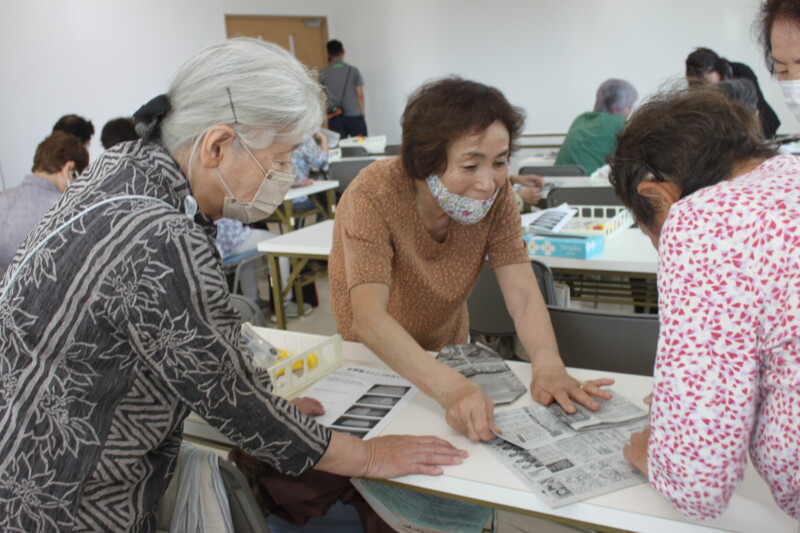 防災スリッパは災害時の履物代わりとして、また寒さしのぎとして使用できます。ランプシェードは身近にある箱ティッシュを使って小さな光源でまわりを明るく照らすことができます。中川さんは「老いを豊かにするためにも、社会とのつながりを持てる女性部活動を地域にもっと広めていきたい」と話していました。