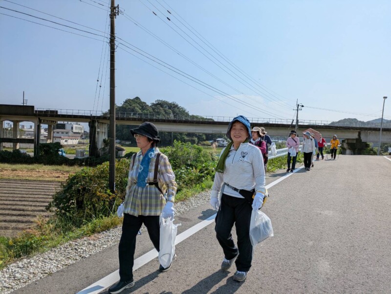 この日は14人が参加。第5回までは、海部郡内の遊歩道や公園など地元を巡ってきましたが、今回は宍喰の町並み、約4kmのコースを、風景を楽しみつつ、ゴミを拾ったりしながら1時間ほど歩きました。