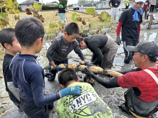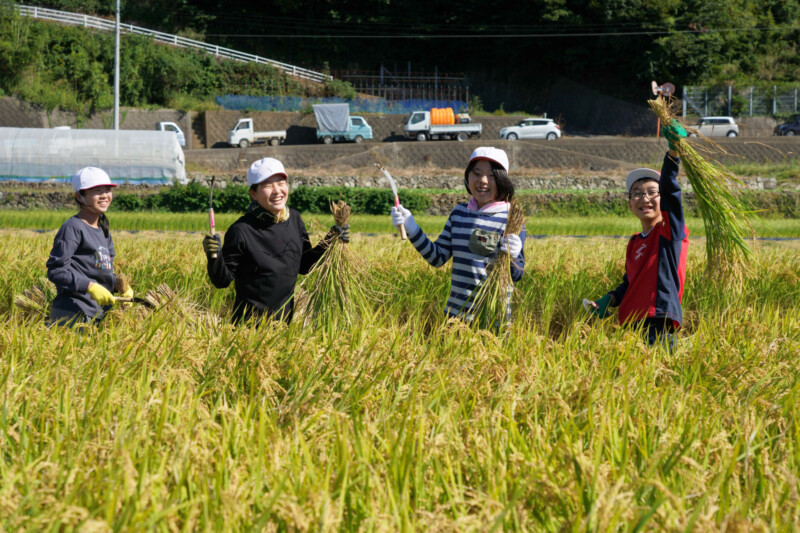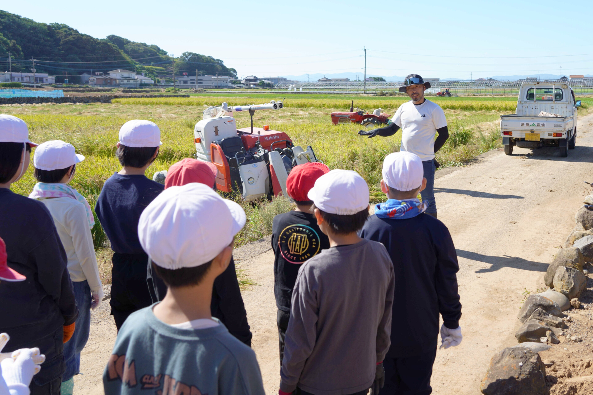 JA島原雲仙青年部南串支部は2025年10月9日、雲仙市立南串第二小学校の4年生から6年生の児童約40人と稲刈り体験をおこないました。同支部では食育活動の一環として、毎年この取り組みをおこなっています。今年も7月に田植え体験をおこない、その後は青年部員が協力して管理作業を続けてきました。