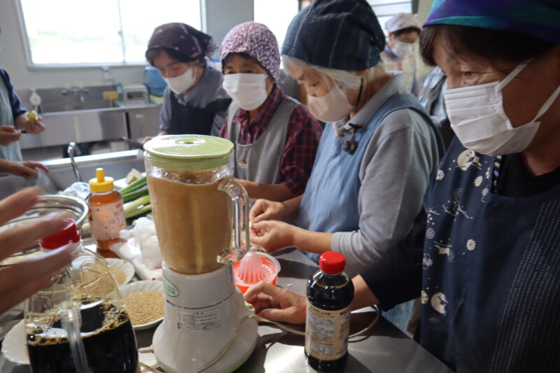 2025年9月25日には地産地消の一環として、地元の梨『あきづき』を使った焼肉のたれ作りをJA本店の調理室で実施しました。