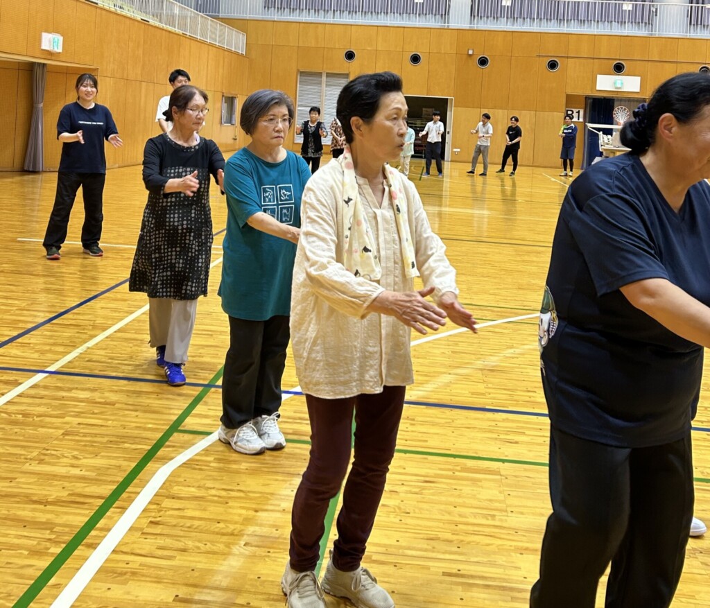 祇園祭の前には体育館で踊りの練習をします。市役所の職員・踊りの保存会・交通安全母の会等、たくさんの人が集まります。そして「稲敷たから音頭」と「あんば囃子」の2つの踊りを繰り返し練習します。本番は30分ぐらい踊るのでけっこう体力を消耗します。当日は天候に恵まれましたが、とても暑く熱中症気味で体調が悪くなる人もいました。年々夏の暑さが酷くなっている気がします。みんながんばって踊り続けたので、どっと疲れが出ました。