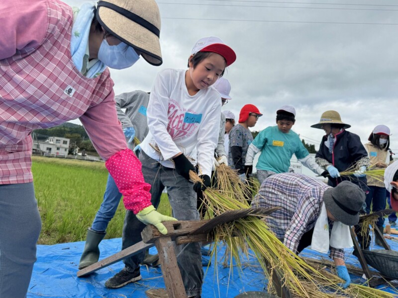 子どもたちが女性部・青壮年部らと稲刈り・脱穀体験 農業の歴史を楽しく学ぶ