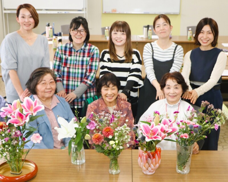 参加者は、色とりどりの花を手に取りながら「この花はわたしたちの地域で育てたものです」と紹介し合い、作品づくりを楽しみました。アレンジメントの合間には、各地域での女性部活動の取り組みや課題について報告し合い、活発な意見交換がおこなわれ、アンシャンテ倶楽部の須田希美部長は「花を通じて自然と会話が生まれ、地域の違いを感じながらも共通の思いを共有でき楽しく交流できました」と話しました。