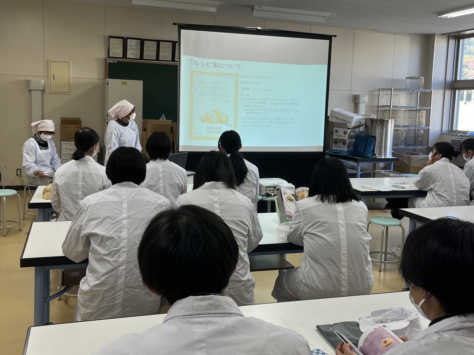 地元特産の「今金男しゃく」で郷土料理「いももち」を作るほか、道外消費地で店頭販売活動や料理教室をおこない、特産品のPRに力を入れています。地元学校での出前授業や、他団体と連携した食育活動を通じて、食のたいせつさを子どもたちに広める活動もしています。また、今金町で取り組む「花いっぱい運動」に参画し、JAの事務所前に毎年プランターを設置して環境美化を通じた地域貢献をしています。