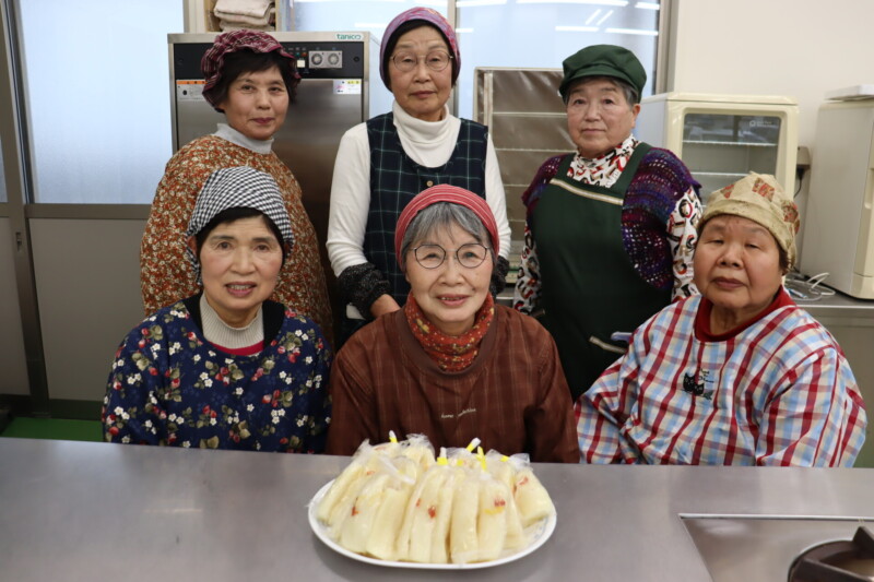 JA晴れの国岡山女性部倉敷市支部の「にこにこ」は、2020年に発足しました。6人の仲間は、自作野菜を使った漬け物をJAの直売所に出荷するのが楽しみであり、また、漬け物を楽しみにJAの直売所に来てくださるお客様の笑顔が漬け物作りの励みになっています。食品衛生法の改正により、個人の台所で販売用の漬け物を製造できなくなってしまいましたが、立派な加工室が完備されているJAに「みんなで利用しましょう」とお誘いいただけたので、二つ返事で快諾しました。以来、JAの加工室で漬け物作りをしています。
