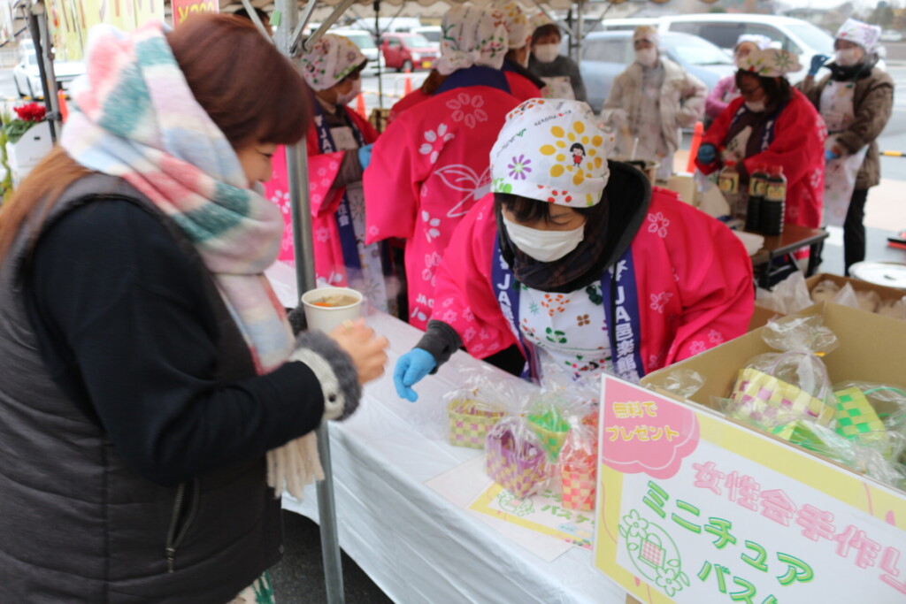 根岸愛子会長は「農家の方が使用するPPバンドを有効活用することができた。今後も『家の光』の記事を参考にしながら、会員が楽しめる教室を開催したい」と話しました。また、今回作った作品は、12月に開催した直売所イベントにて組合員や地域住民限定100名様にプレゼントしました。