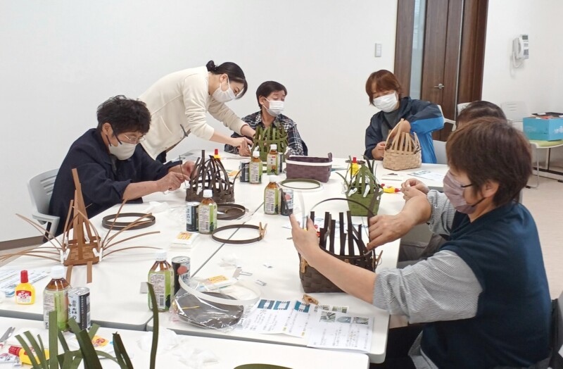 制作時間は約2時間。集中しながらも和気あいあいとした雰囲気で、手作りの楽しさを満喫していました。参加者は「色を選ぶところから楽しくて、編み込む作業に夢中になりました。家で使うのが楽しみです」と話していました。