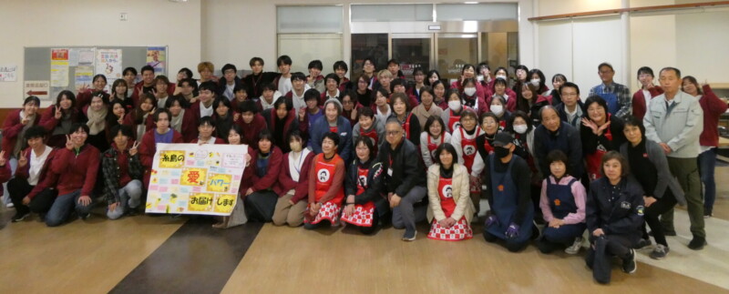 コロナ禍に始めた食の支援活動は今回で5回めとなり、組合員・地域住民や賛同する団体から心温まる支援が重なり届いた量は約7.5トン。2025年12月10日(水)18:00からの応援市に並ぶ長蛇の列は夕暮れとともに長くなり、学業に励むおよそ800人の学生さんに糸島農畜産物と方言交えの会話を添えて届けることができました。「今日を待っていました!」「ほんとうに助かる」のことばに「たくさん食べてね。また、来るけんね」とおたがいにうれしい気持ちになりました。もしかすると廃棄されていた食材は、食品ロスを減らし、地域を元気にみんな笑顔になる取り組みです。これからも力を出し合って糸島の愛とパワーを届ける活動を続けていきます。