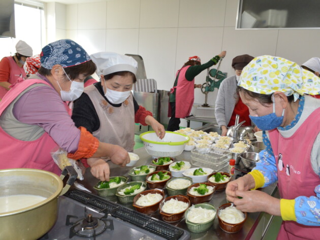 JA香川県丸亀地域女性部フレッシュミズ部会「アザレア」は、2026年2月に、丸亀市の丸亀女性研修センターコスモスで「チョコレートお菓子作り講習会」を開きました。講習会には部員11人が参加し、薄くスライスしたサツマイモ、カボチャ、レンコン、ジャガイモ、ニンジンをカリッとするまでレンジにかけ、チョコレートで飾りつけをしました。ガトーショコラはサトイモを入れて焼き上げました。