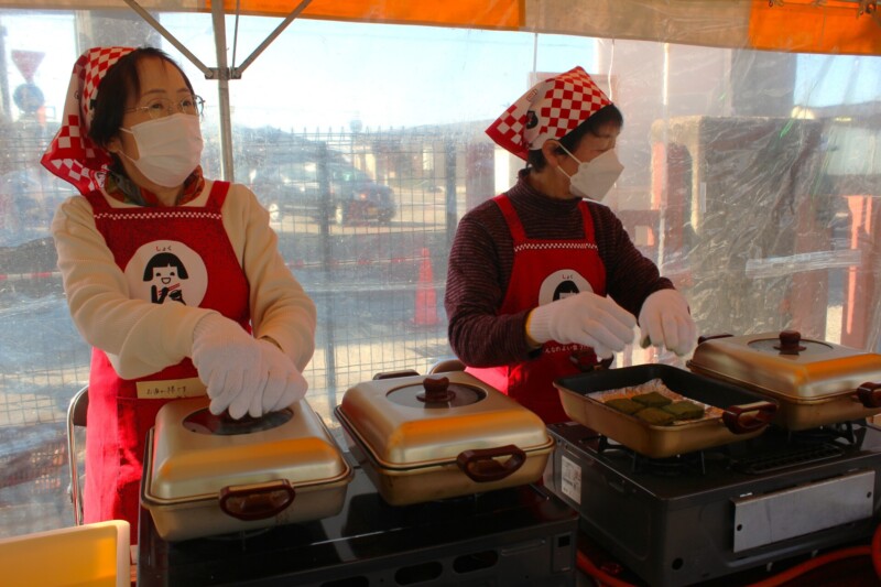 農業祭当日は、ブース内で開場前から焼き始め、来場者に焼きたてを販売。2025年は例年より多くの人に買ってもらうことができました。購入者からは「おいしかったからもう一個買いたいわ」「懐かしい、昔よく食べた」という声をいただく一方で、「焼きつけってなに?」と質問をいただくこともあり、まだまだ若い世代や組合員の中にも知らない方がいるのだと痛感させられました。