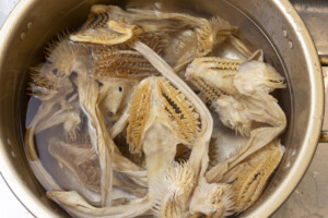 ❶たらおさを水につける。もどし時間は常温なら約1日が目安で、ときどき水を替える。