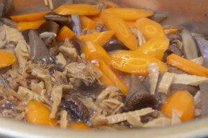 ❹ ニンジンを入れ、調味料(分量外)で味をととのえ、さらに30分ほど煮こんだら、できあがり。翌日ふたたび煮こむと、さらにおいしくなる。