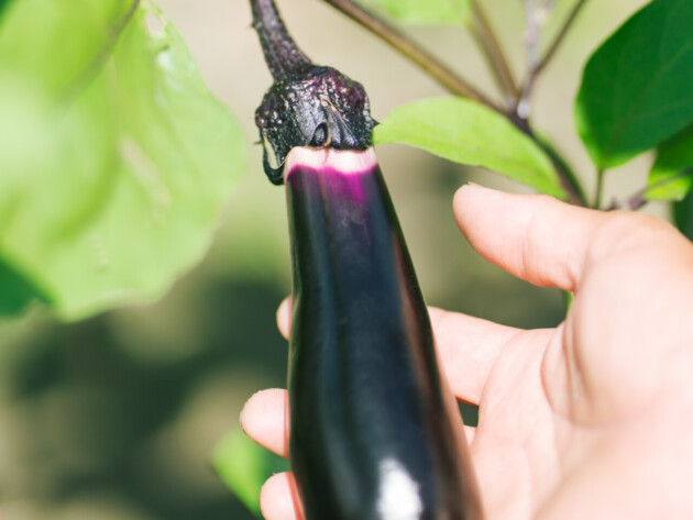 ジリジリと照りつける日ざしの下、勢いよく伸びた枝葉を手に取りながらの巡回指導は続きます。葉陰に実るのは、生育最盛期を迎えたピーマン。ここJA十和田おいらせでは近年、販売単価が順調に推移してきた作目です。