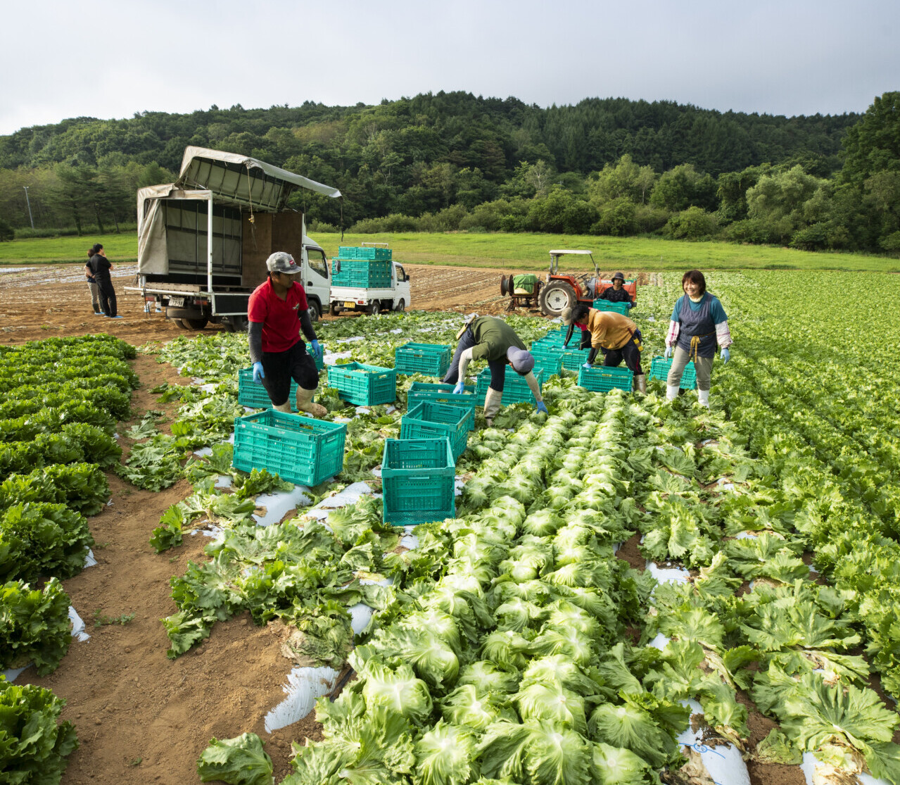 空がうっすらと白み始めた、真夏の高原。ひんやりした霧が立ちこめる早朝、なだらかな傾斜地に広がる畑では「レタス」の収穫が始まっていた。