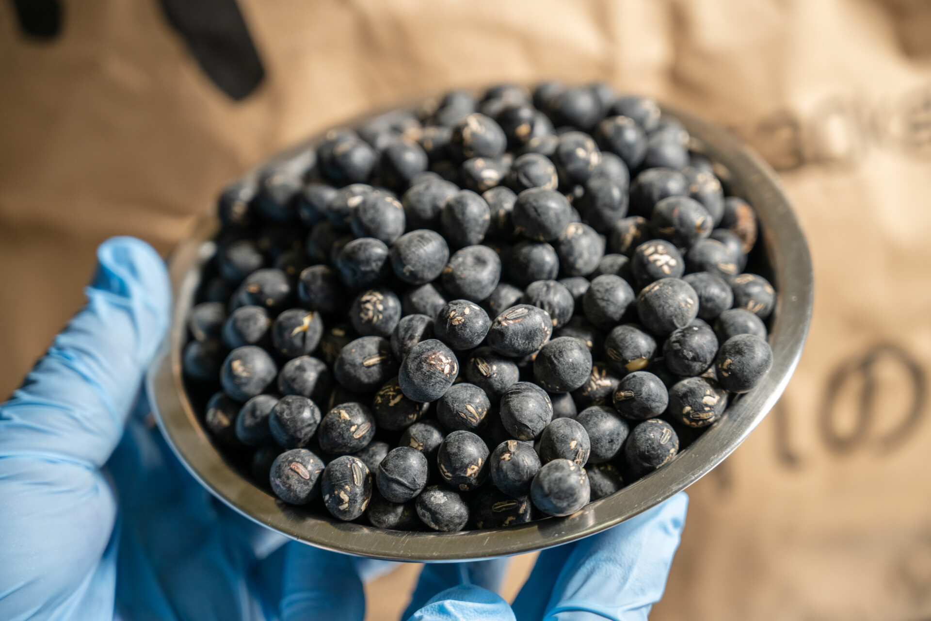 美作市を含む県北東部は、全国有数の黒ダイズの産地。市内だけでも、栽培面積は六十四ヘクタールになります。しかも粒が大きく、甘みやうまみが強いのが特徴。『作州黒』という呼び名で、ブランド化もしています。