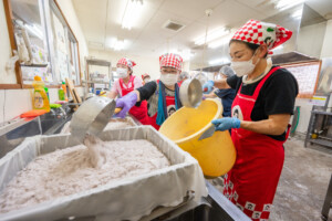 一方で栽培は難しく、価格も白ダイズの三倍ほどするため、なかなか豆腐の材料には使えないそう。「でもね、味は格別なのよ」と、はればれ加工部代表の篠山紋子さん(70)は教えてくれました。