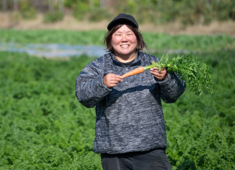 独立二年めには、川崎さんを「先輩!」と呼ぶ、農業大学校の後輩・長重さんを雇用しました。長重さんはそのときのことを振り返り、「人柄にほれて働くことを決めました。頼りがいのある温かい人で、みんなから愛されている。だから農園にも人が集まってくるんです」と、話します。